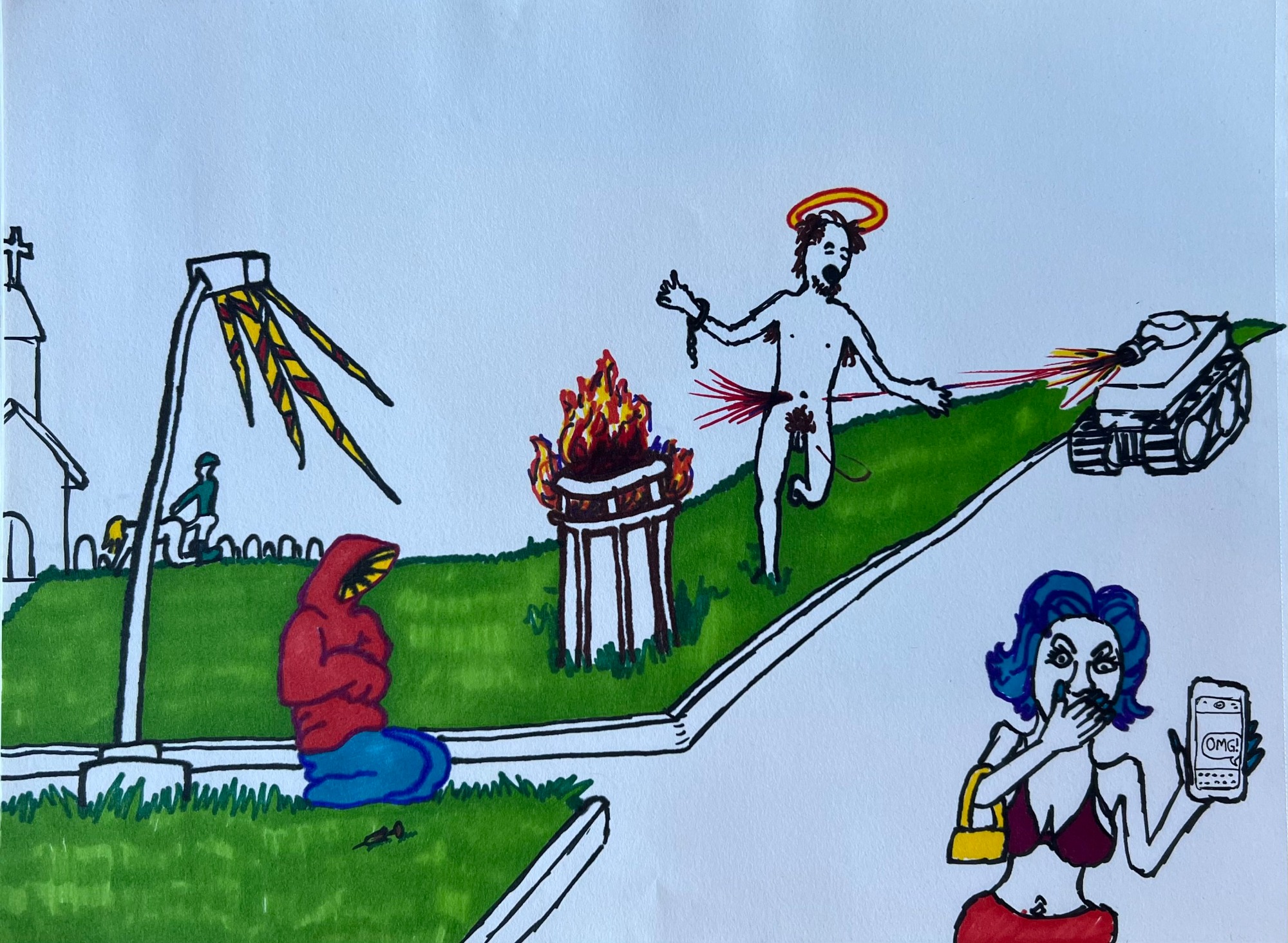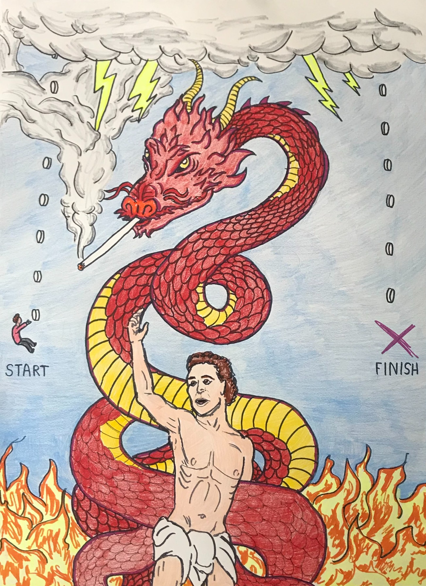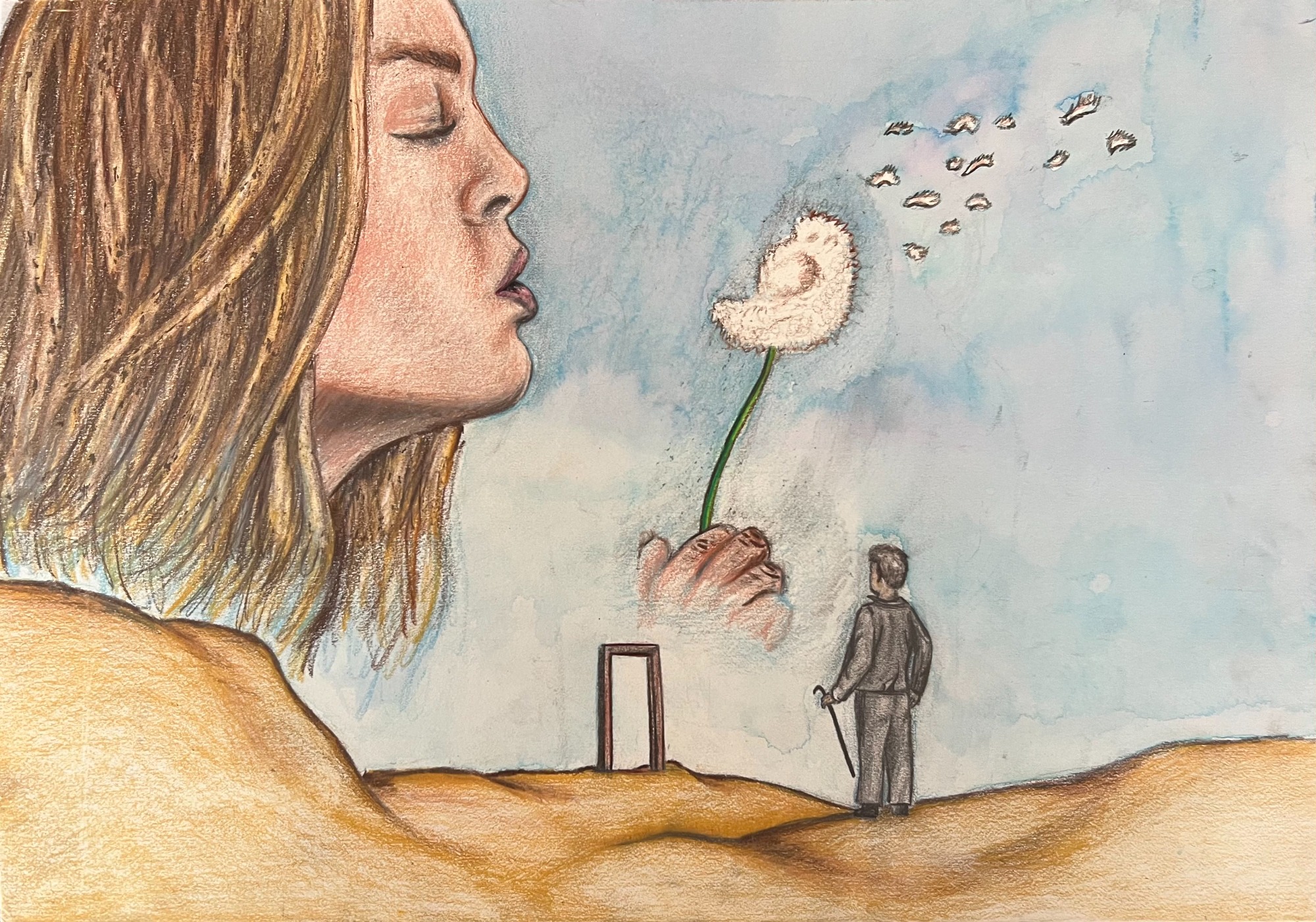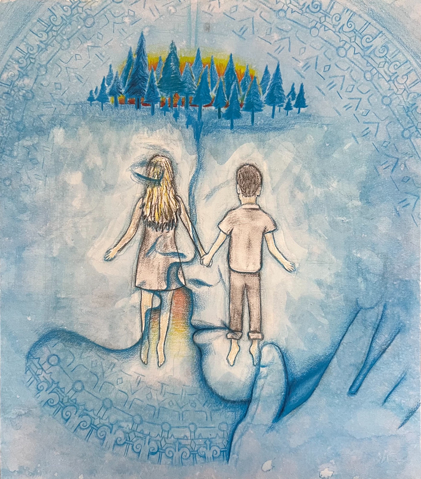 My AP Art project, depicting the stages of life from before birth to beyond death in colorful mixed media - lots of ink, watercolors, colored pencils...